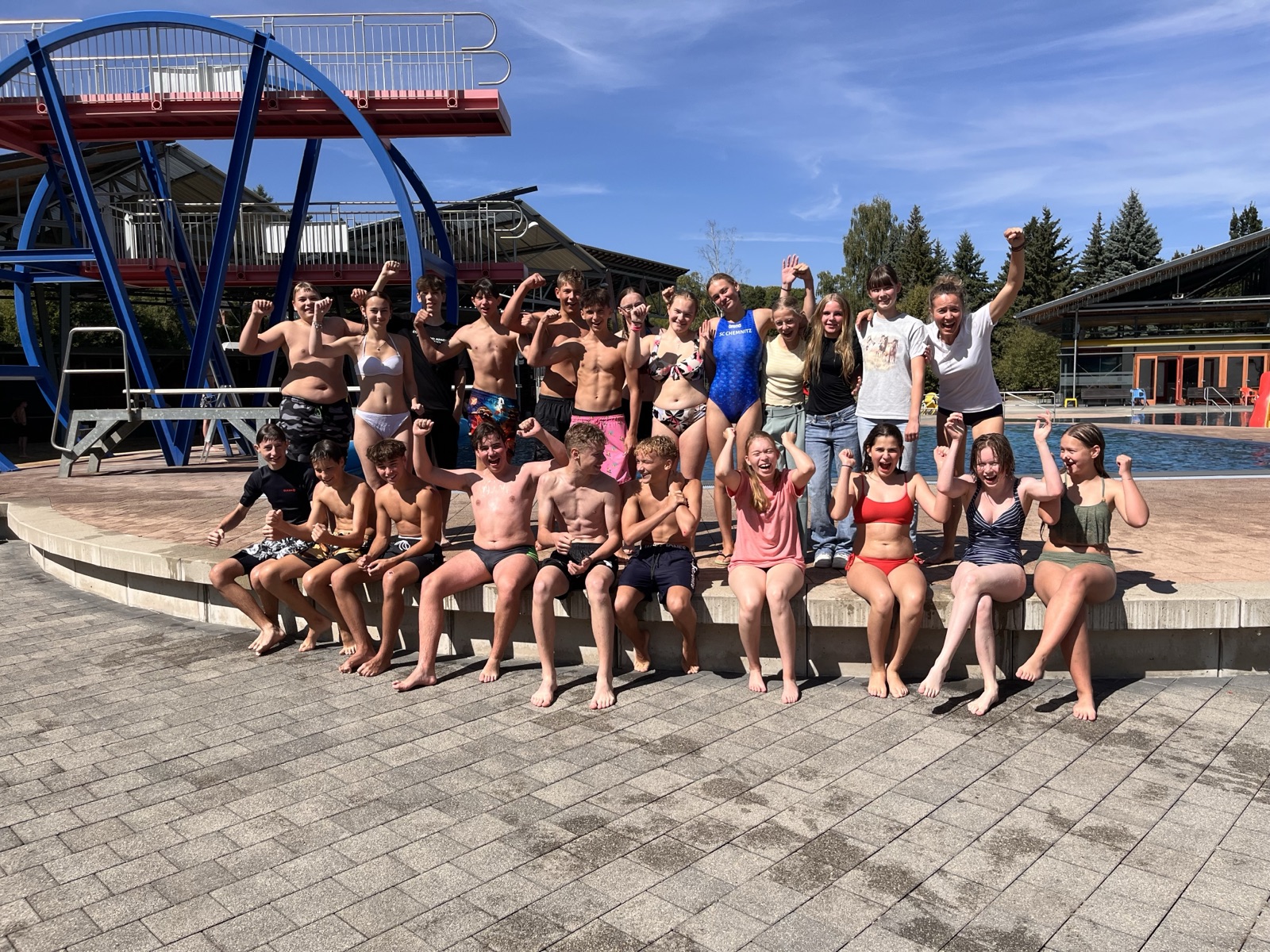....herrlichstes Badewetter im Gepäck und wurde der Wandertag zum Schwimmbadausflug. Bei diesen Temperaturen und den recht verregneten Sommerferien, hatte die 9a keine Einwände. Die Schüler verbrachten einen lustigen und erfrischenden Tag im Freibad Elstergarten in Oelsnitz.
