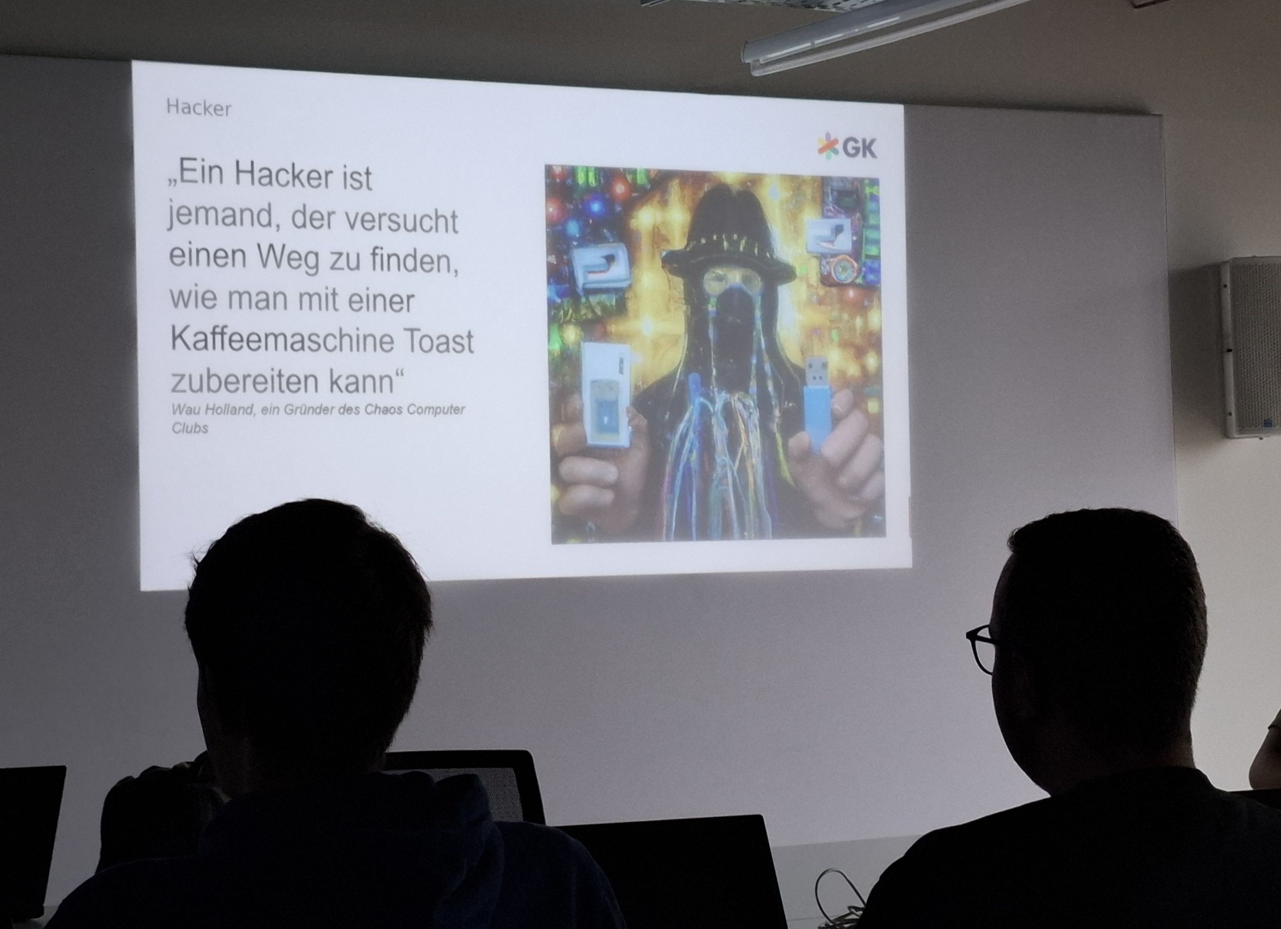 Empfangen wurden wir von einem engagierten Team freundlicher Mitarbeiterinnen und Mitarbeiter, die uns zunächst das Unternehmen in einem informativen Vortrag vorstellten. Dabei lernten wir nicht nur die Tätigkeitsfelder und die internationale Ausrichtung von GK Software kennen, sondern auch, wie wichtig der Schutz sensibler Daten in der heutigen, zunehmend digitalisierten Welt ist.